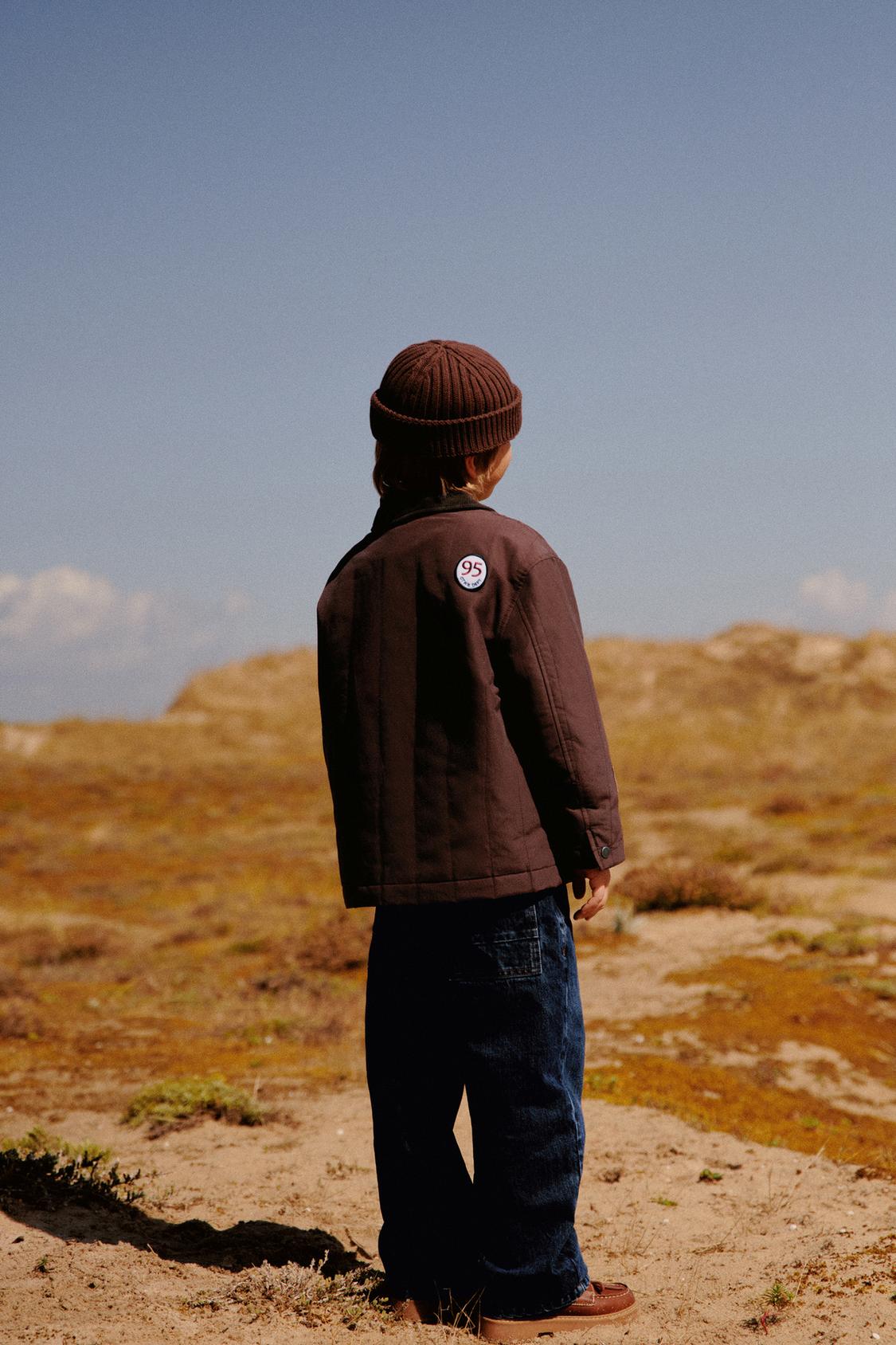 Jeans with adjustable inner waistband and front button closure. Front pockets and patch pockets on the back. Slit detail at the hem.