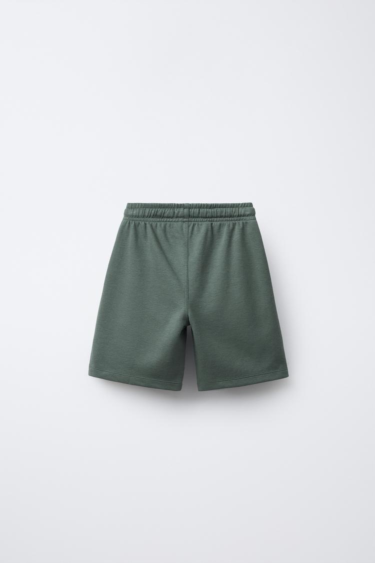 Two-piece set. Round neck short sleeve T-shirt. Text print on chest. Bermuda shorts with elastic waistband and adjustable front drawstrings. Front pockets and text print on hem. Fabric with 50% cotton.
